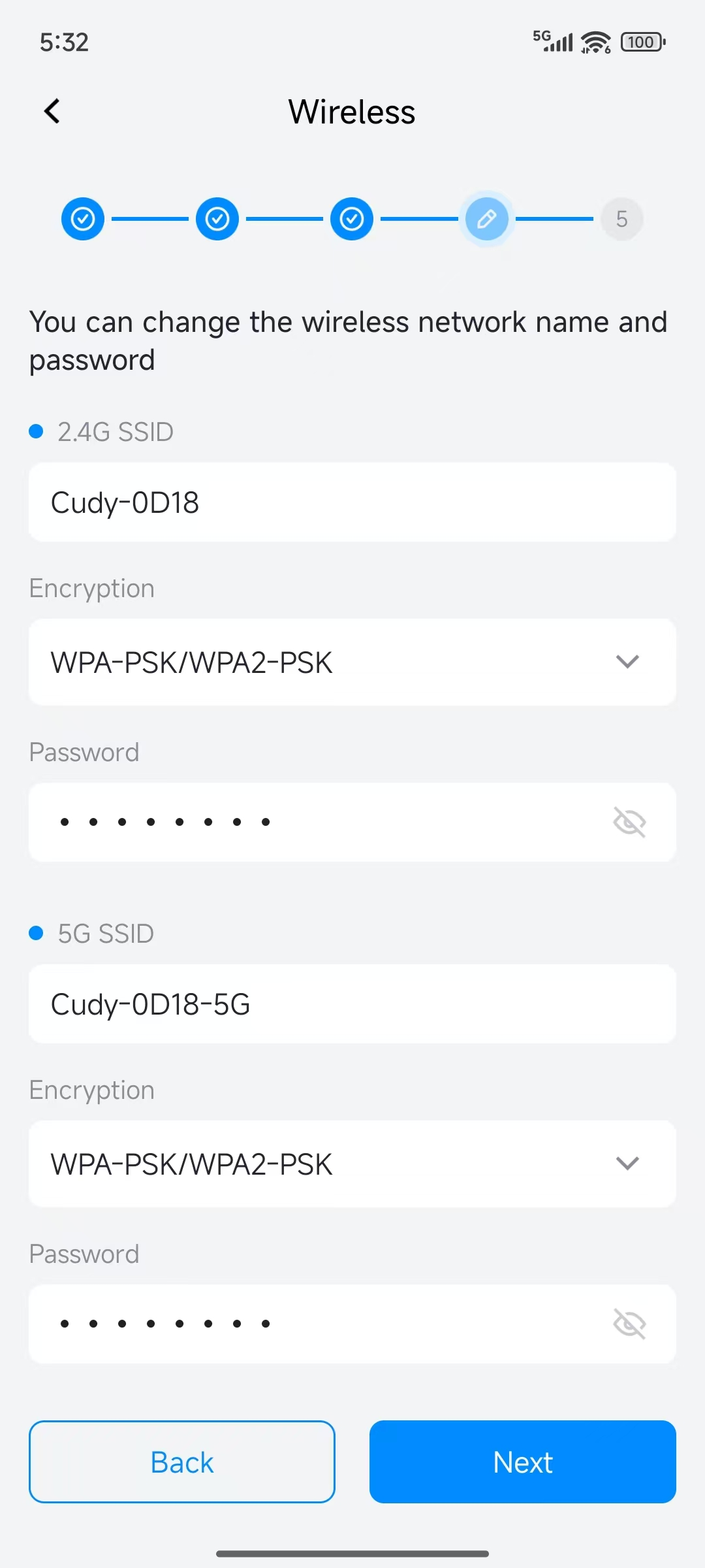 You can set the 2.4G and 5GHz Wi-Fi name, Encryption and Wi-Fi password of your router. For "Encryption", we suggest WPA2-PSK/WPA3-SAE. But if there is some old device that only supports the old encryption protocol WPA-PSK. You can keep the Encryption to "WPA-PSK/WPA2-PSK".