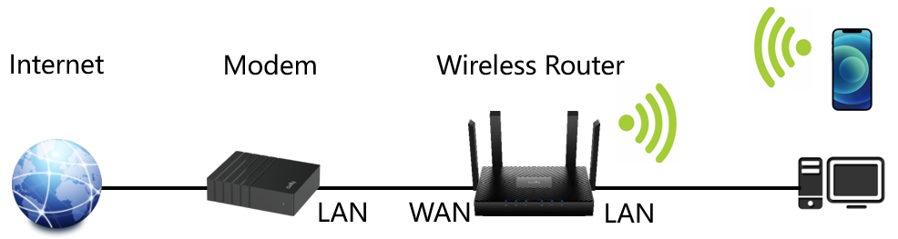 - Connect the router's WAN port to the powered-off modem via an Ethernet cable.