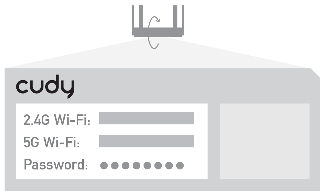 Check the default Wi-Fi SSID (Cudy-XXXX and Cudy-XXXX-5G) and the Wi-Fi password on the label of the router. As shown below.