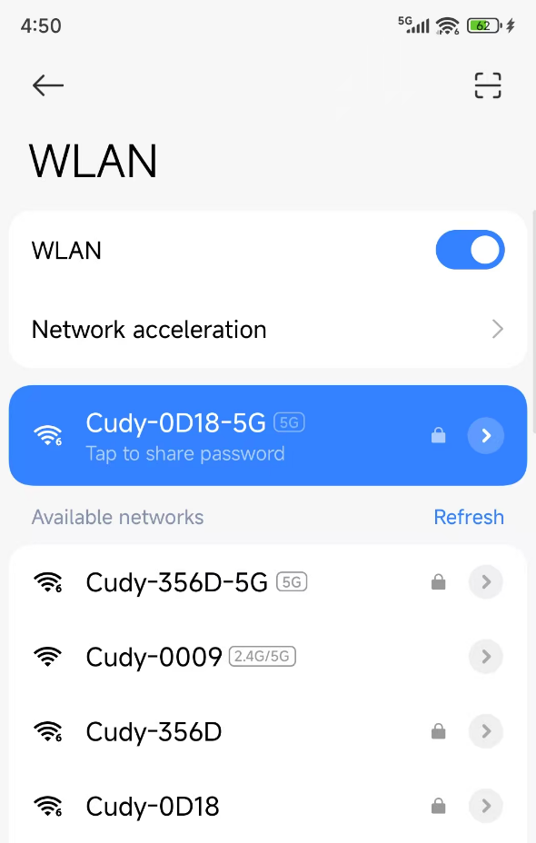 Go to your phone’s Wi-Fi settings and connect it to your Cudy router’s Wi-Fi network.