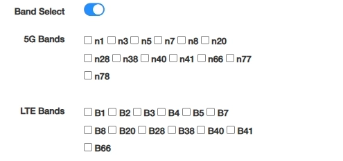 Enable Band Select to allow manual selection of specific frequency bands for network connectivity, useful for optimizing signal strength or compatibility.