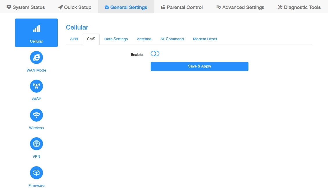 Click Enable and then Save & Apply to manage or monitor the router remotely by sending simple text commands or receiving automated alerts.