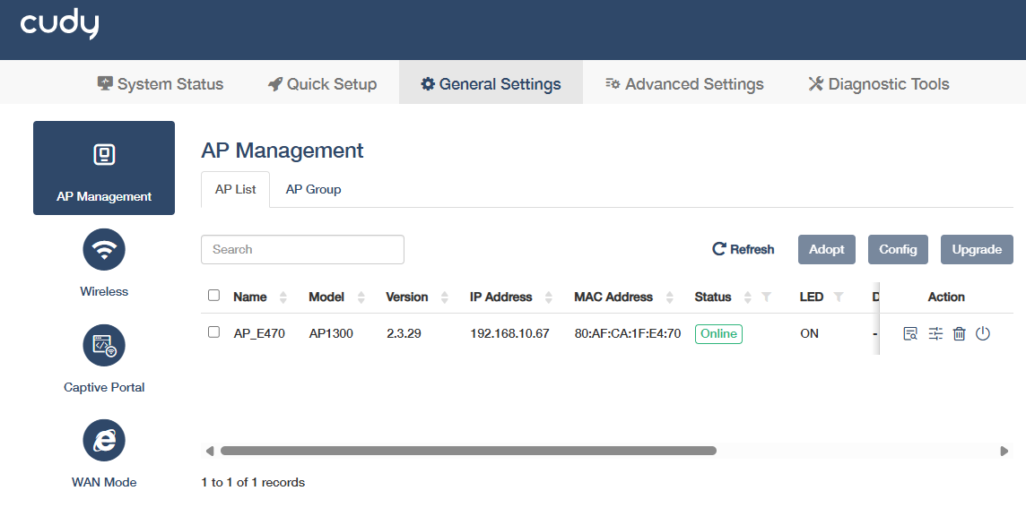 - Status: Shows Online/Offline/Adopting. Troubleshoot if Offline.