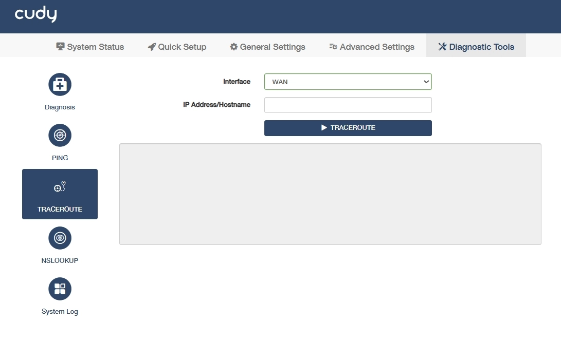 - Click TRACEROUTE to start the diagnosis.