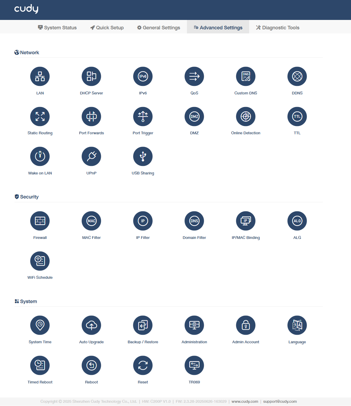 To enhance your home network security with a kit of features built in Cudy router. In Wireless router mode, it includes Firewall, MAC filter, IP filter, Domain Filter, IP/MAC Binding, WPS, Wi-Fi Schedule, and ALG; while in Wireless Access Point mode, it consists of WPS and Wi-Fi Schedule.