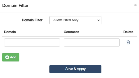 - Enter the Domain and comment of the devices you want to filter. Delete as needed.