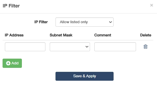 - IP address: Enter the IP address you would like to filter.