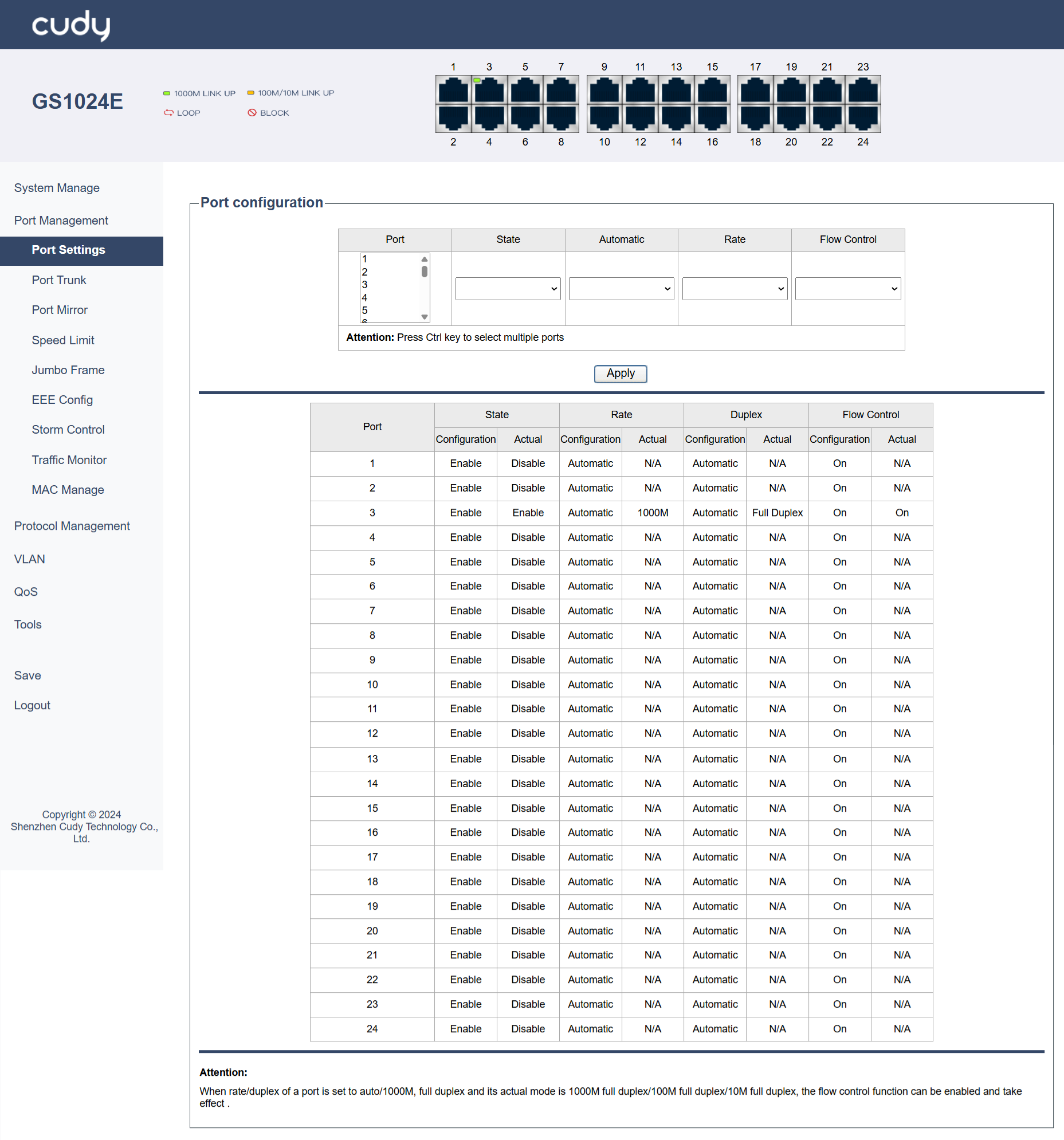- Automatic: Turn On or Off the auto-negotiation for the port.