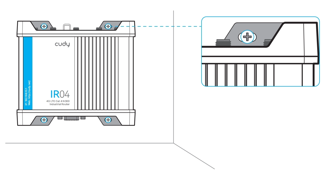- Tighten the bracket onto the router with the provided screws.