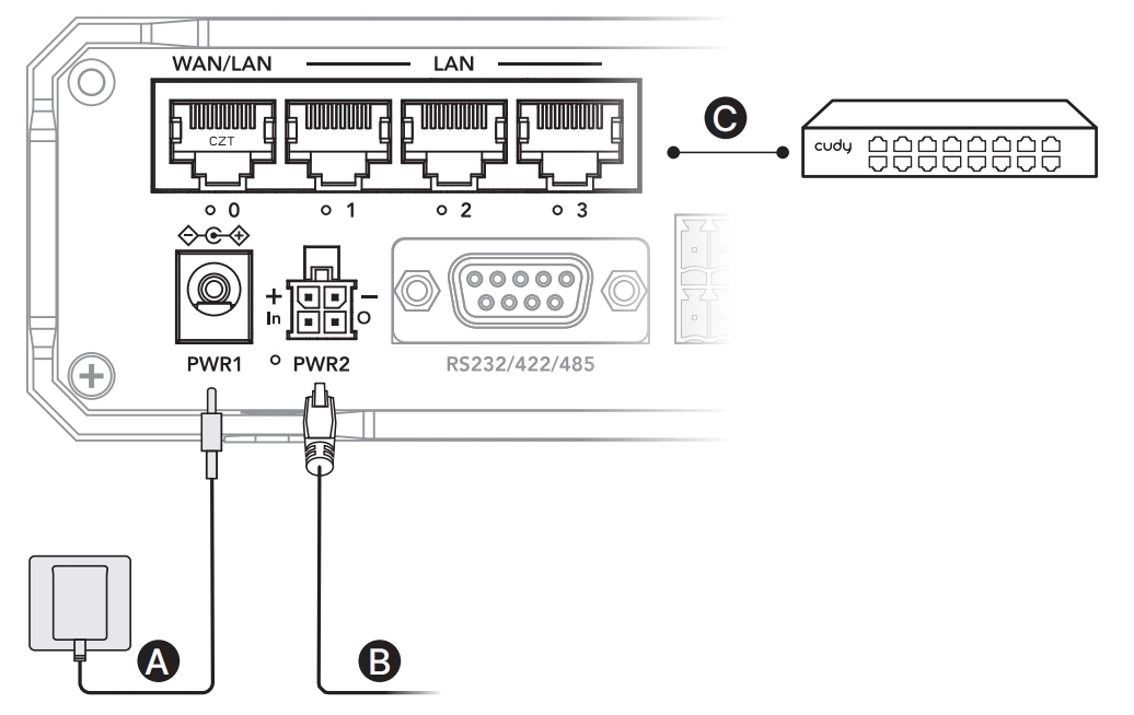 Method C. Connect a PSE or PoE adapter to the WAN/LAN or LAN 1/2/3 port.