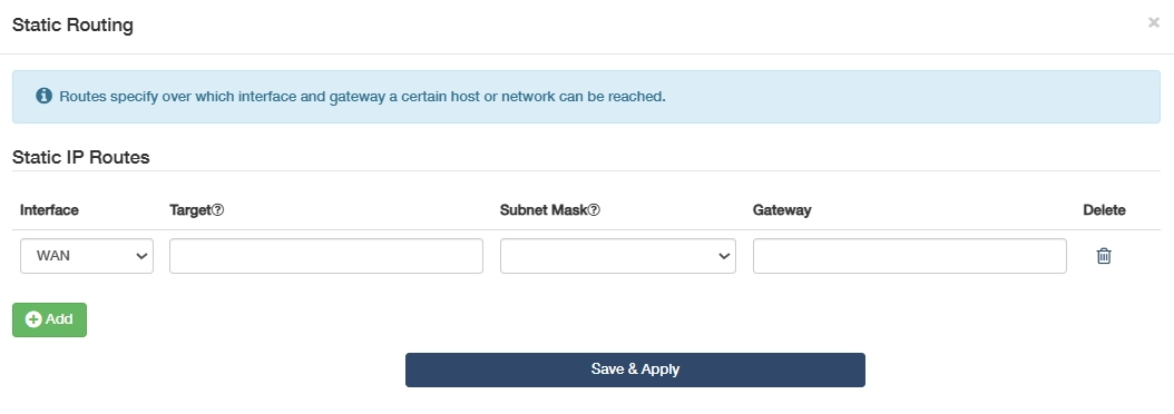 Subnet Mask: It is required if the Target is a network. It determines the destination network with the destination IP address. If the destination is a single IP address, enter 255.255.255.255; otherwise, enter the subnet mask of the corresponding network IP.