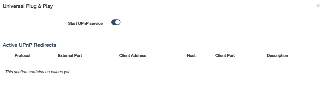 UPnP (Universal Plug and Play) protocol allows applications or host devices to automatically find the front-end NAT device and send request to it to open the corresponding ports. With UPnP enabled, the applications or host devices on the local network and the Internet can freely communicate with each other thus realizing the seamless connection of the network.