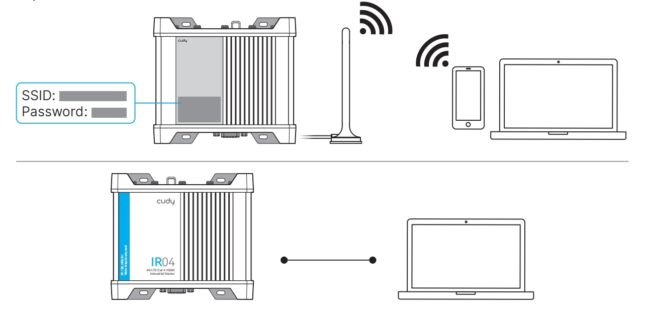 Connect the management device to the router via an Ethernet cable or Wi-Fi (default SSID and Password are printed on the product label).