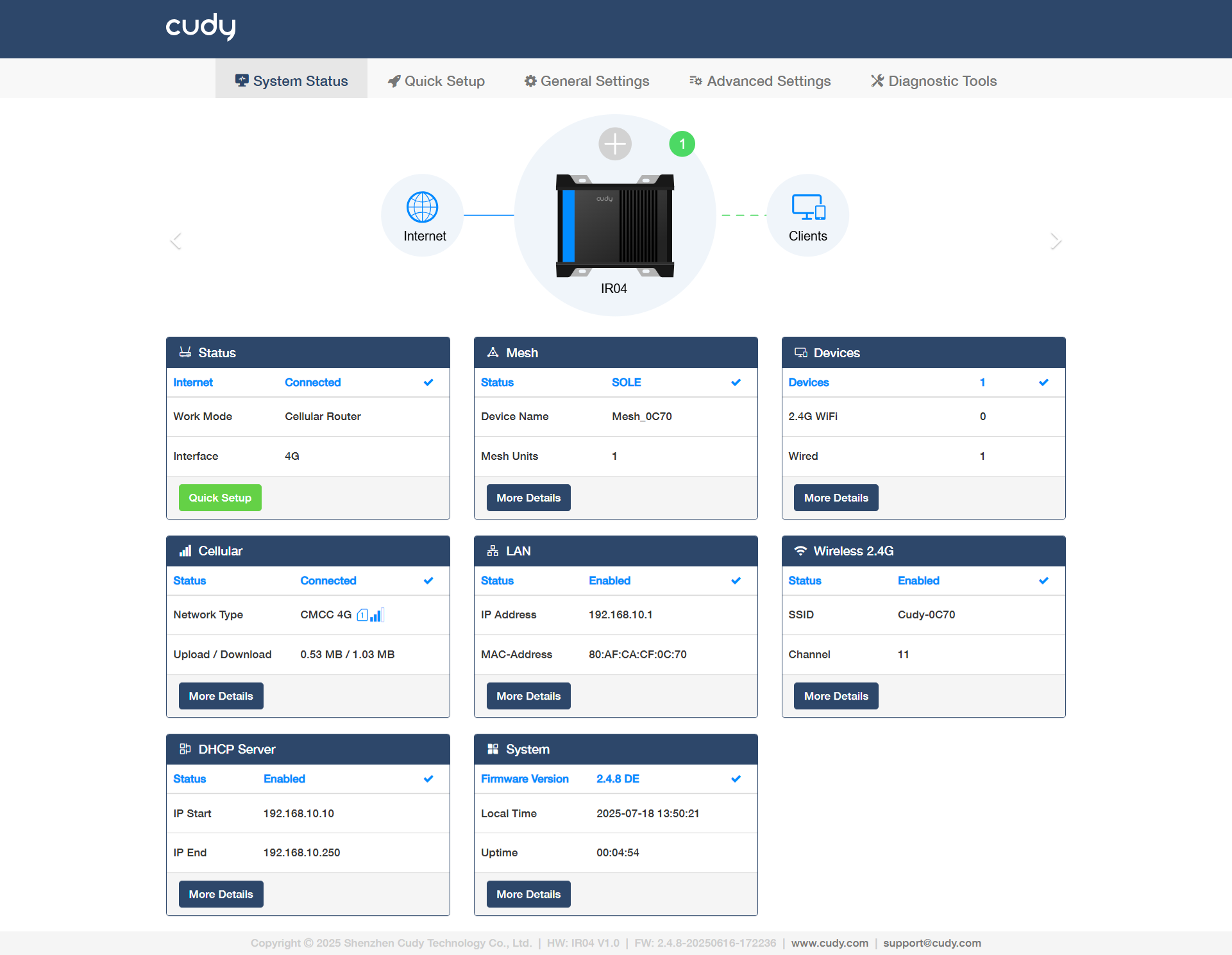 Launch a browser, enter cudy.net (or 192.168.10.1) in the address bar, and create a password to log in. Then follow the step-by-step instructions to complete the Quick Setup.