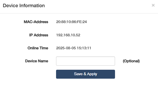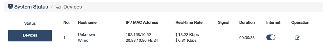 - View the Device information about hostname, IP/MAC address, real-time rate, Signal and connection duration.