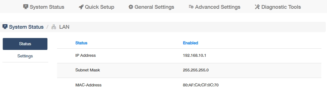 shows whether the router's LAN network connection is enabled or not, its IP address and MAC address. Click More Details to know more information on the Status sub-page, or configure some settings (refer to LAN).