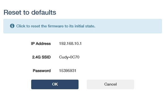 Before clicking OK to reset it, please note down the SSID and password (or refer them to the product label) for later reconnection.