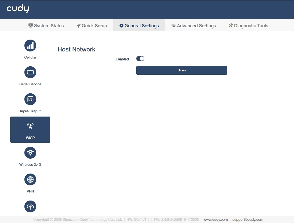 - Scan: Click to search for available Wi-Fi networks to connect to.