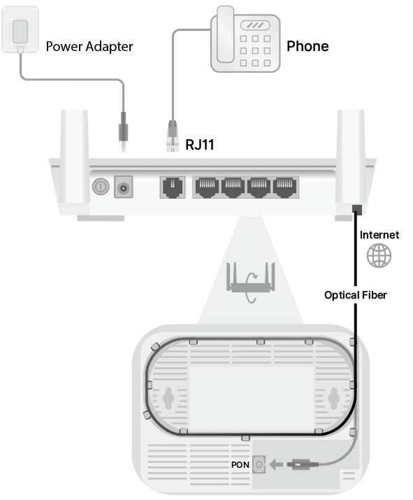 Wi-Fi name (SSID) and password are on the router's bottom label.