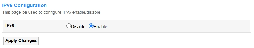 - IPv6: Select to Enable or Disable IPv6 configuration.