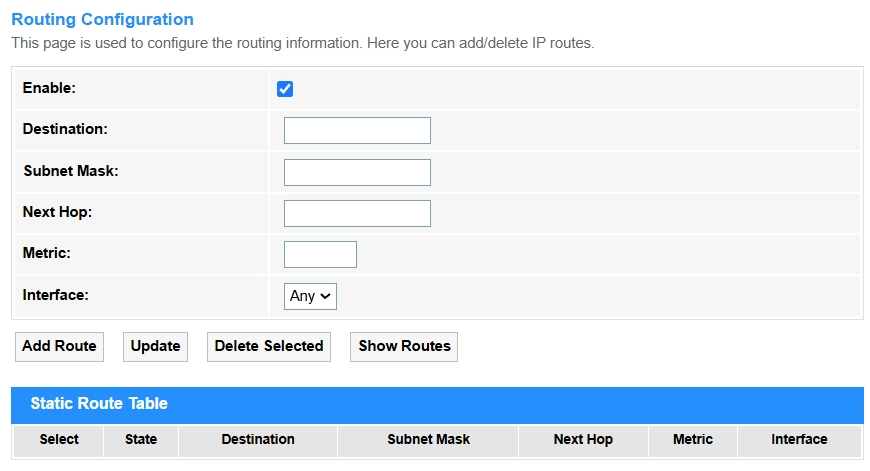 Show Routes: Click to view the IP Route Table of destination routes commonly accessed by your network.