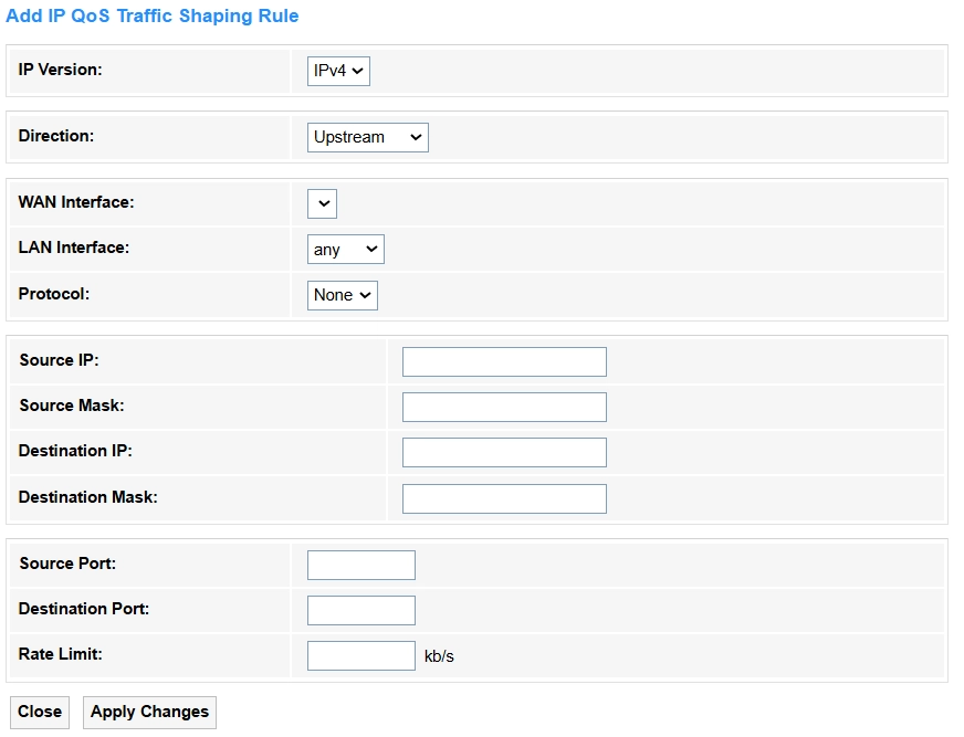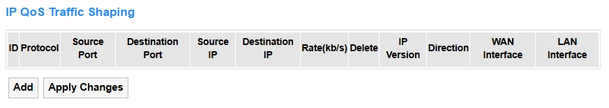 Add: Click to configure the IP QoS Traffic Shaping Rule.