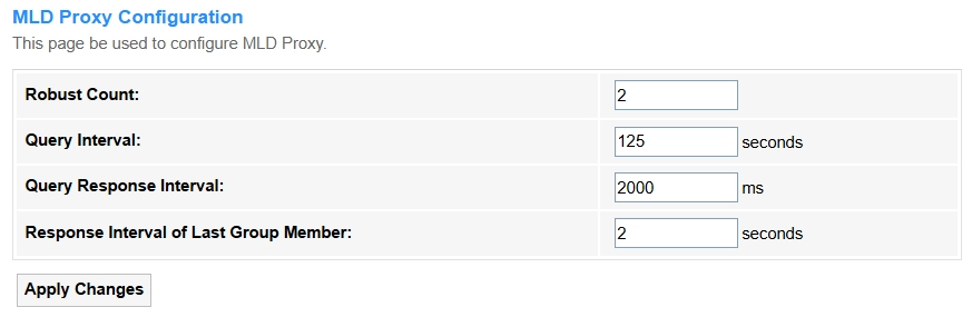 Query Interval: Set the time (seconds) between general IGMP/MLD membership queries (e.g., 125).