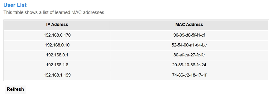 IP Address: Enter a numerical label assigned to devices for network communication (e.g., 192.168.1.1 or 2001:db8::1). Then click Add to add the new entry into the MAC Binding Table.