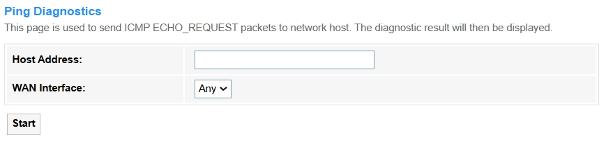 • WAN Interface: Keep the default *Any* and the router will automatically use its primary WAN IP (or all available WAN interfaces) as the source for the ping test.