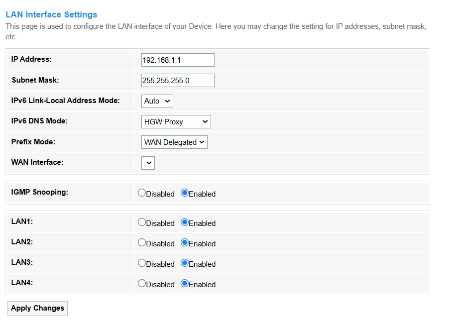 Enable IGMP Snooping to optimize multicast traffic for LAN ports (reduces unnecessary flooding).