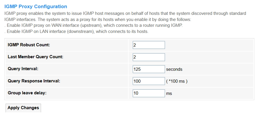 - Query Interval: Time (seconds) between general membership queries (default=125). Shorter intervals detect leaves faster but increase traffic.