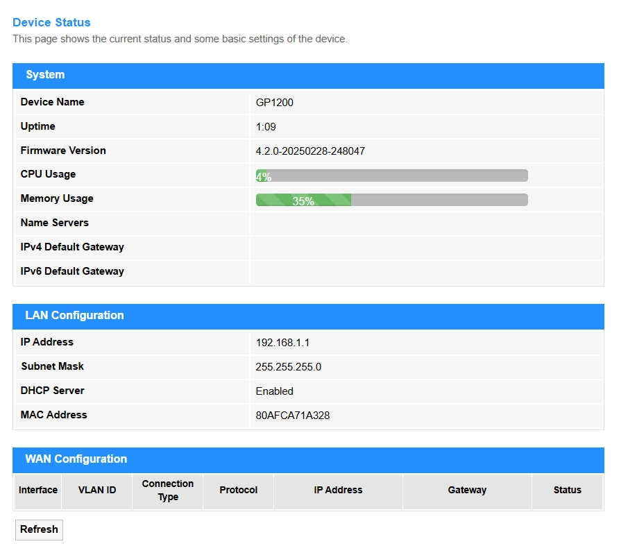 Refresh: Click to update the LAN Port Status.