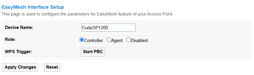 - Reset: Click to reset this device to disable the EasyMesh function.