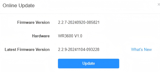 If you miss the prompt, please go to General Settings -> Firmware to Check for update. If there is one, click Update and wait a few minutes for the update and reboot to complete.