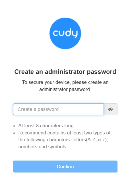 Create an administrator password to log in the management web page.