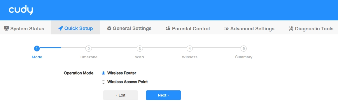 Quick Setup page will pop up, otherwise you may click Quick Setup tab.