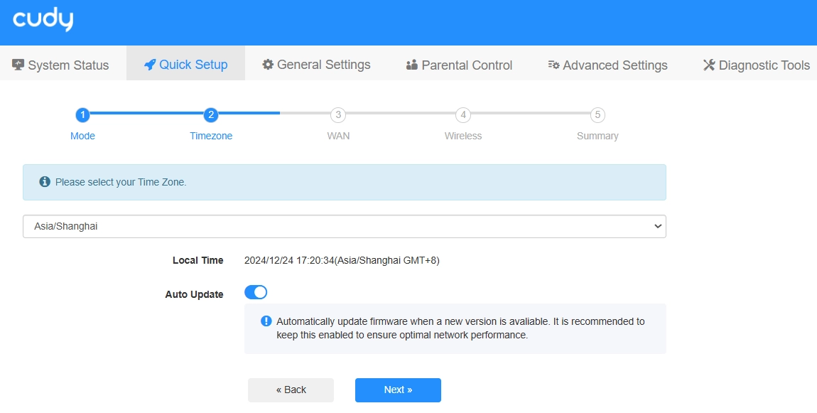 Select your Timezone from the drop-down list and enable Auto Update.