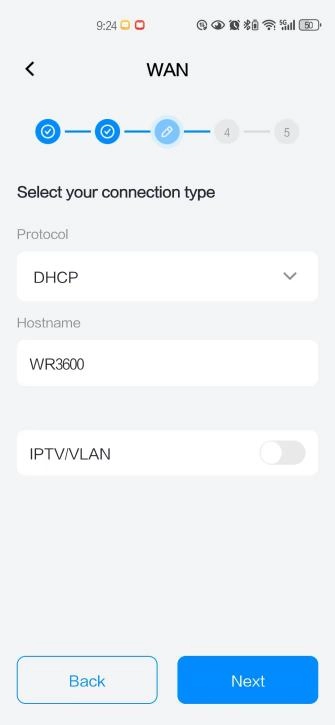 Select your connection type and enter the required parameters provided by your ISP.
