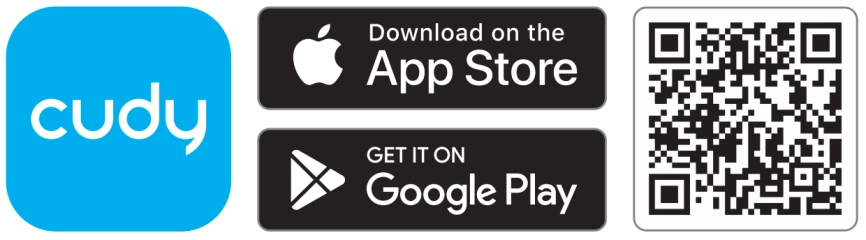 Scan the QR code on the product box or Quick Installation Guide, or search Cudy in the Apple App Store or Google Play store to download the Cudy App.