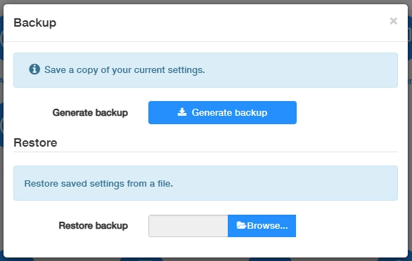 1) Click Generate backup to download and save a copy of the current settings in your local computer in the form of .bin file.