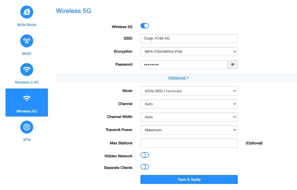 - Enable Wireless 5G;