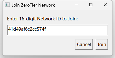 Click the ZeroTier icon and then Join New Network..., enter the Network ID and click Join.